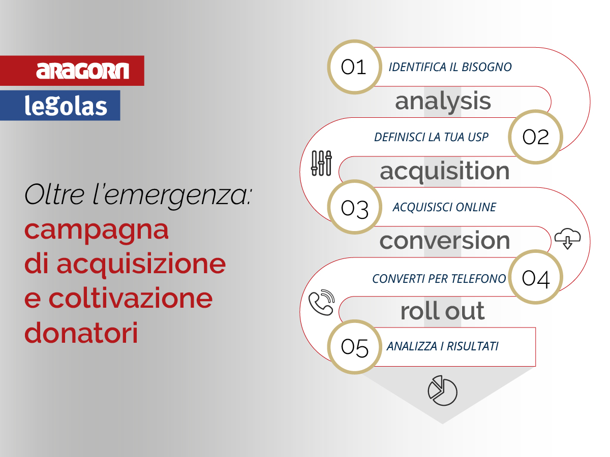 Per arginare una crisi che rischia di minare la stabilità di migliaia di enti non profit, Aragorn e Legolas hanno confezionato una proposta di acquisizione e conversione adatta alle realtà che intendono allargare la loro base donatori, sia regolari sia one off.