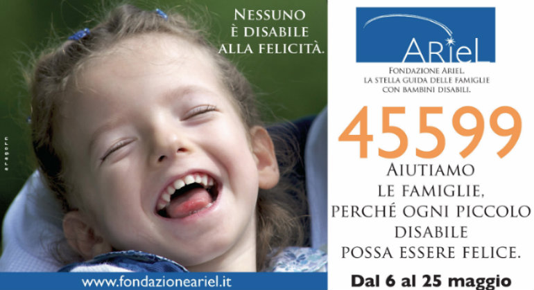 Prosegue la campagna di raccolta fondi con SMS solidale di Fondazione Ariel Fino al 25 maggio Ariel, fondazione che dal 2003 aiuta le famiglie dei bambini affetti da Paralisi Cerebrale Infantile (PCI), promuove una campagna di raccolta fondi con SMS solidale al 45599 per offrire alle famiglie dei bambini colpiti da questa grave malattia quelle risposte di tipo medico, psicologico e sociale di cui hanno bisogno. 40.000 è il numero dei bambini che oggi in Italia soffrono di PCI, una malattia legata...