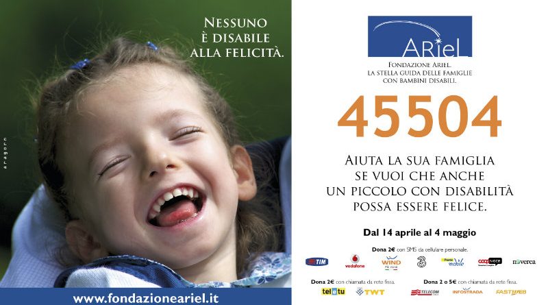 SMS solidale di Fondazione Ariel per aiutare le famiglie con bambini affetti da Paralisi Cerebrale In Italia sono 50.000 i bambini colpiti da Paralisi Cerebrale Infantile (PCI), malattia neuromotoria che ha un’incidenza di 1 su 500 nuovi nati. Per potenziare i servizi di supporto medico, psicologico e sociale alle famiglie di questi bambini, Fondazione Ariel promuove fino al 21 aprile una campagna di sensibilizzazione e di raccolta fondi con SMS solidale al 45501. Con il ricavato sarà possibile sostenere il progetto “Un aiuto...